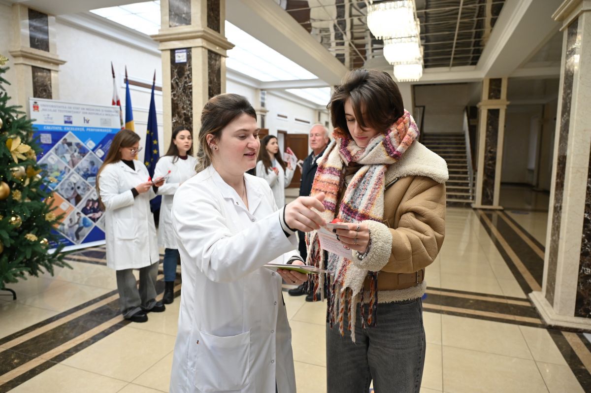 În cadrul evenimentului, medicii rezidenți din anul IV de la specialitatea Boli infecțioase au împărțit pliante și au prins la piept fundițe roșii – simbolul universal de conștientizare, sprijin și solidaritate cu persoanele care trăiesc cu HIV.
