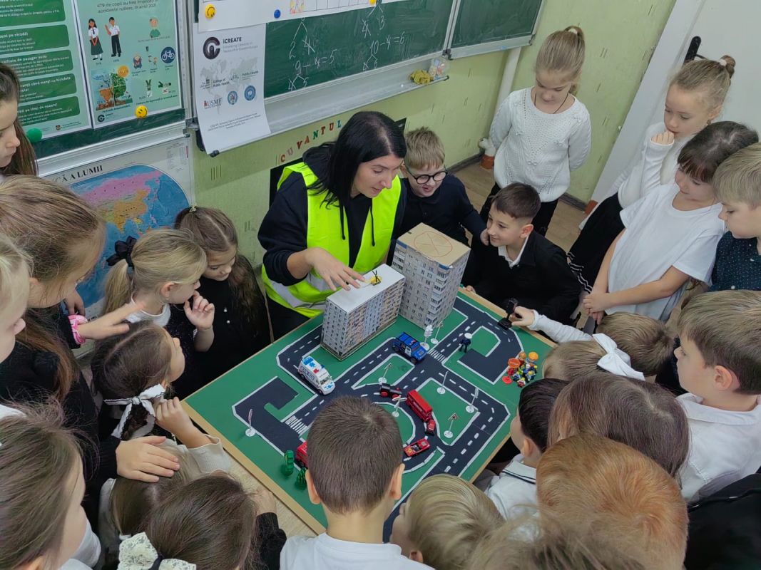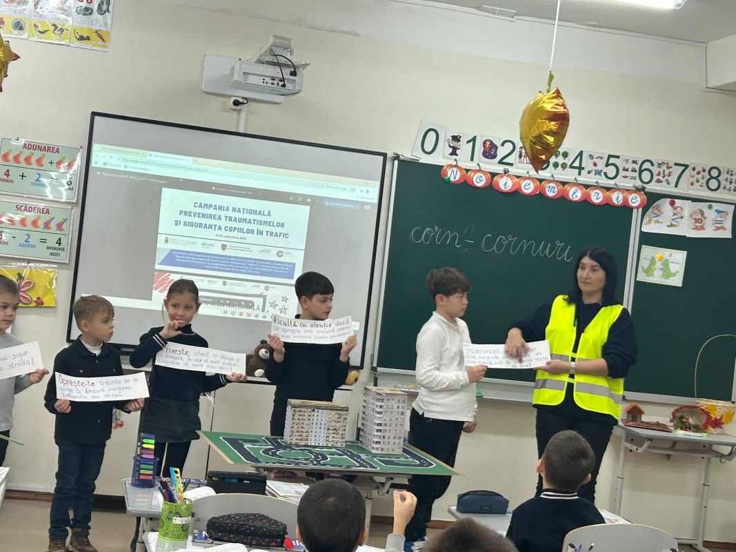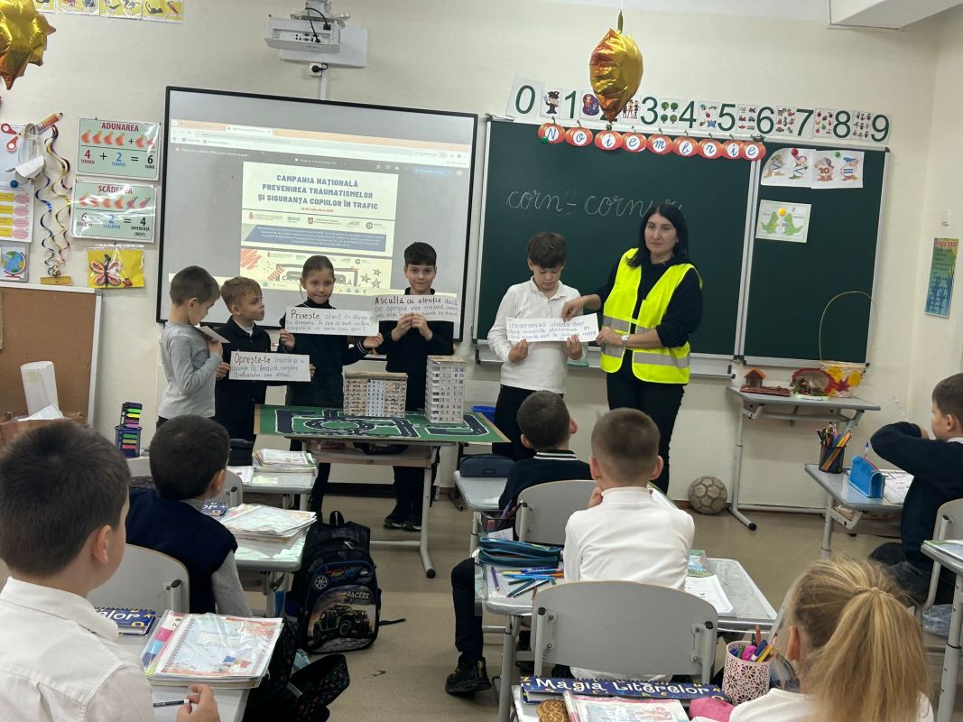 campanie prevenirea traumatismelor rutiereExerciții practice au realizat și elevii claselor primare de la Liceul Teoretic „Mihail Sadoveanu” din orașul Hîncești, care au făcut cunoștință cu principalele indicatoare rutiere și au participat la activități interactive privind modul corect de traversare a străzii și comportamentul responsabil al pietonilor. Activitatea a avut rolul de a consolida cunoștințele teoretice și de a forma deprinderi practice sigure încă de la vârste fragede.